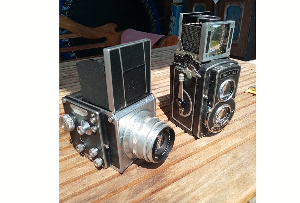 Ciao Franco, buongiorno, guarda è difficile da credere, ma in un paesello di duemila abitanti come il mio hanno dormito per mezzo secolo ben due macchine di un certo valore, la Ikoflex che ho descritto ed una Bentzin Primar ReflexII che ha però lo specchio bloccato e della quale non ho parlato in precedenza; tutte e due le macchine, soprattutto la Bentzin, sono in condizioni estetiche non si può dire pari al nuovo ma eccellenti, specialmente per quel che riguarda le ottiche che come sai sono la prima cosa che noi appassionati controlliamo. La storia che le accompagna è entusiasmante: appartenevano ad una reporter tedesca tale Sig.ra Waegener a sua volta formatasi allo studio di Lena Junghans a Dresda, dalla quale ha avuto in dono la Ikoflex, riuscita a fuggire poi ad ovest al contrario della sua insegnante ed ereditate dal figlio Knut, quello di spalle nel fotogramma, che a sua volta è stato compagno della mia ex moglie fino a qualche anno fa e che quando ha fatto le valigie (non ha retto nemmeno lui, e lo capisco) le ha dimenticate presso la casa di lei, a Cavalese. Ora entra in gioco uno dei miei sei figli, uno dei più grandi, che facendo pulizia in cantina ha ritrovato il tutto e mi ha PENSATO conoscendo la mia passione per la fotografia , ed una volta rintracciato Knut ed avuto il permesso di maneggiarle me le ha prontamente portate.A quel punto la scoperta del rullino che per me è stata la cosa più sconvolgente, poter entrare nella vita di chissà chi e viaggiare nel tempo in un'avventura dagli esiti incerti. Chissà mai se tra cinquant'anni trovando una chiavetta con dei file, uno dei miei ragazzi riuscirà ad aprirli e stamparli... ho qualche dubbio, invece con un rullino Ferrania ciò è stato possibile e, mi ripeto, al di là delle macchine che ho avuto il permesso di tenermi, la vera emozione, grande ed indescrivibile, è stata sviluppare QUEL rullino, aspettare un'ora che lo stand lavorasse, il solito stop, il solito fix, i risciacqui e poi dopo tanto.... aprire la spirale e scoprire i fotogrammi.